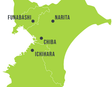 千葉市、四街道市、佐倉市、市原市、習志野市、船橋市、成田市、八千代市