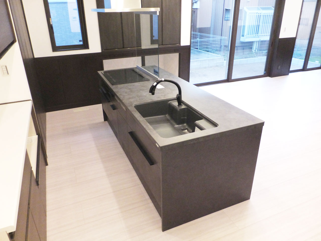 キッチンの色(天板・シンク・水栓)もすべてブラックに統一。
