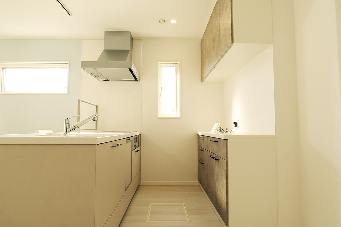 天板はワイドカウンターなので広々と使え料理の準備もはかどります。傷のつきにくい人工大理石なのでお掃除も簡単!また、シンクもXWシンクで汚れがたまりにくいです。※食洗器は標準装備