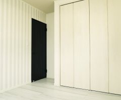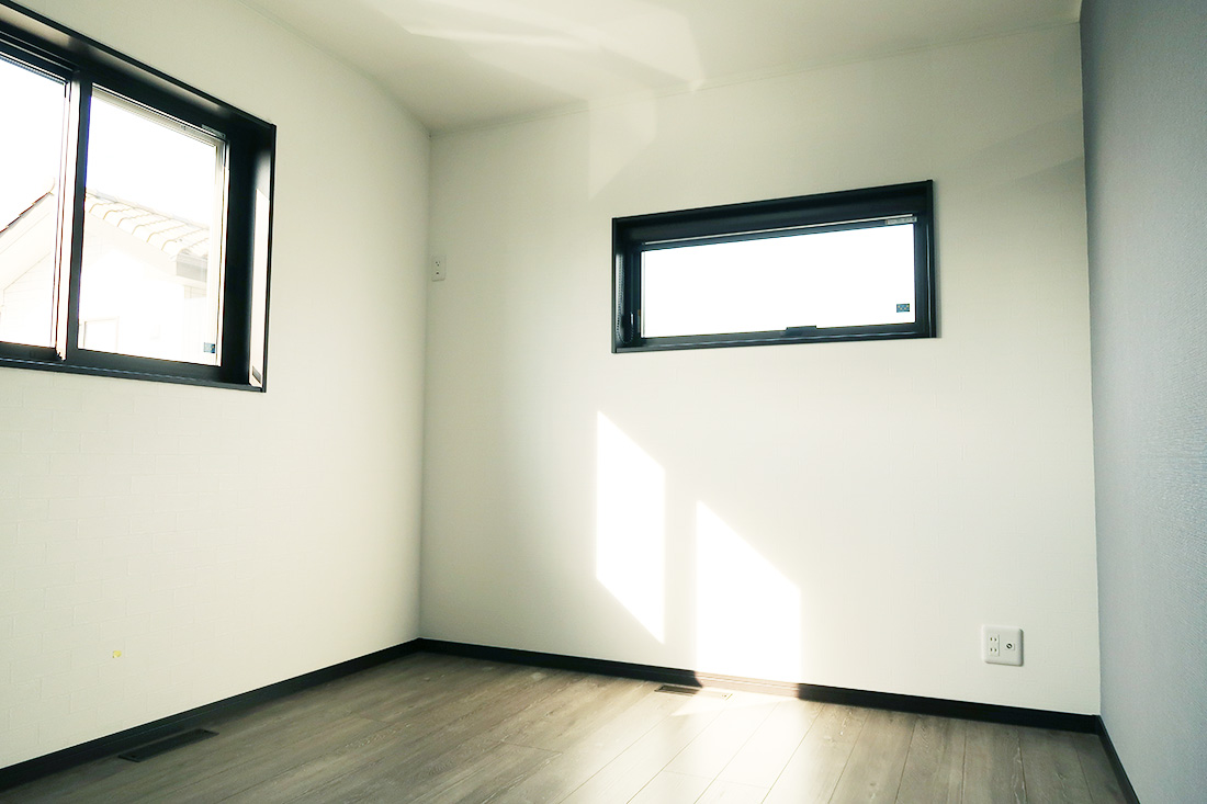 窓枠・巾木を黒、アクセントクロスをダーク調にし大人のイメージ。