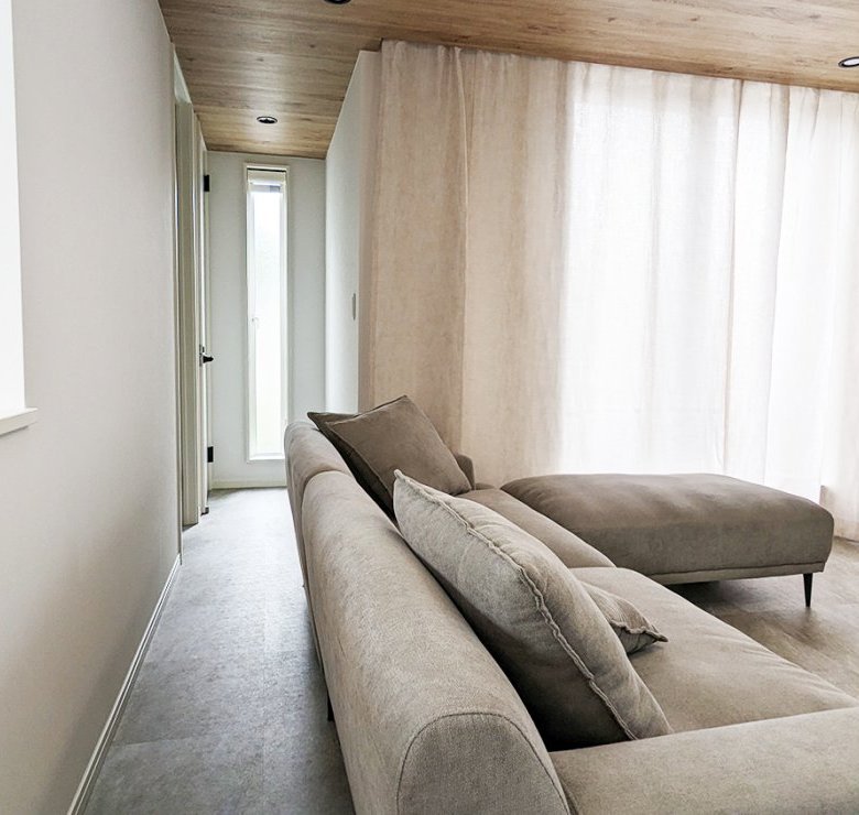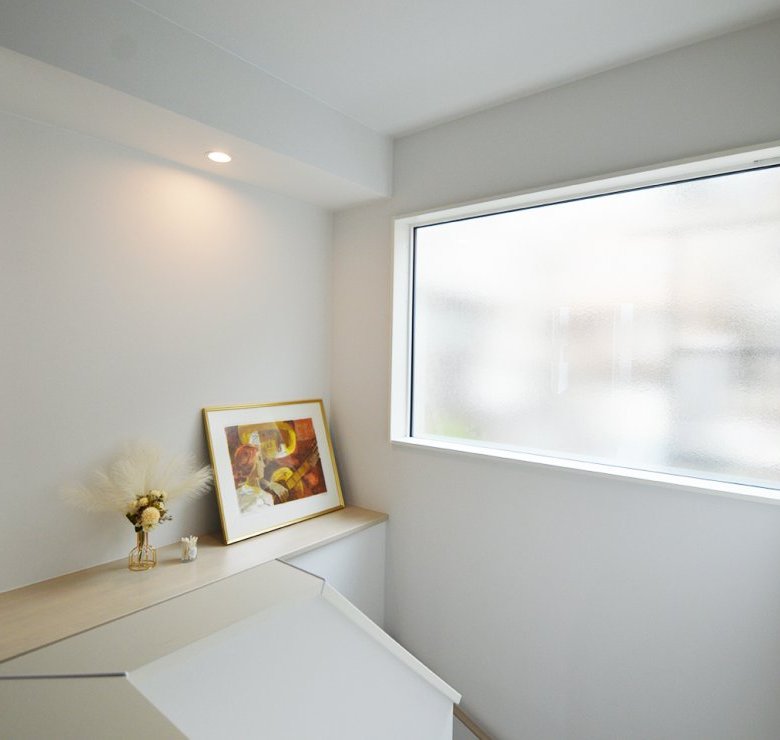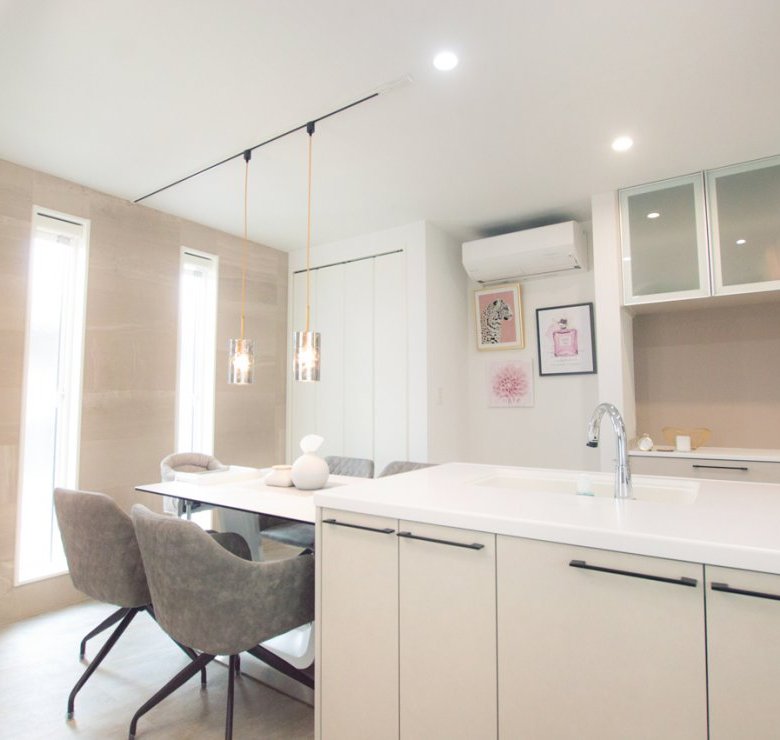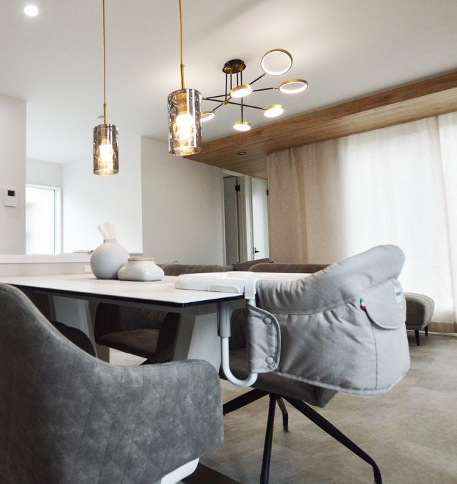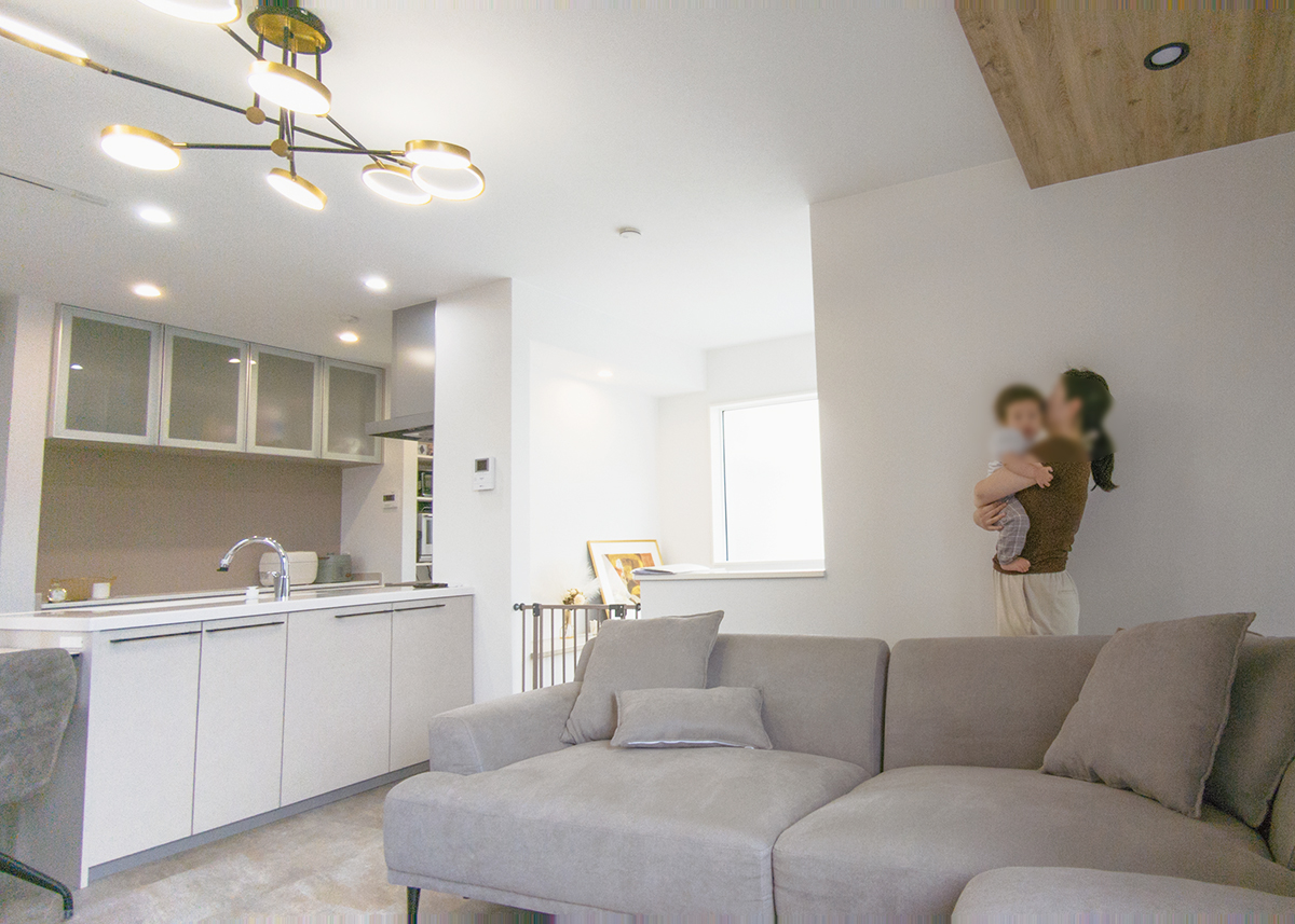 明るいリビングを奥様が希望されていたこともあり、2階にリビングを配置することで問題を解決しました。1階には主寝室や洋室、浴室・洗面。ご夫婦の内装センスが抜群に良い住まいとなりました。