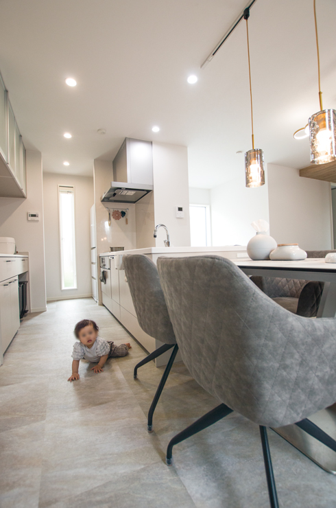 LDK17.5帖ですが、計算された導線・レイアウトで無駄な空間を無くし、コンパクト快適空間を創り上げることができました。