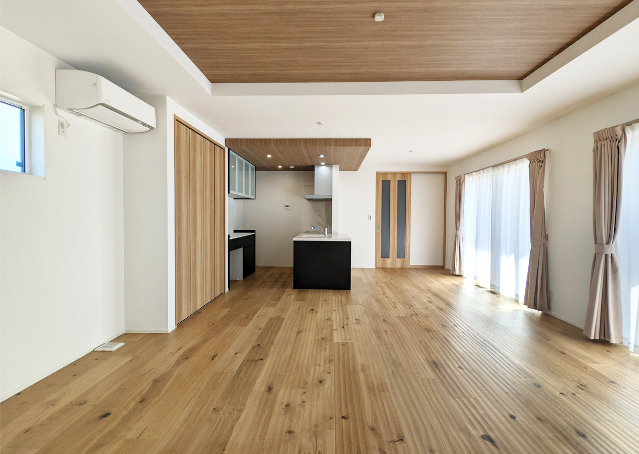 素足に心地よい無垢材フローリングと、ゆとりのある暮らし空間
