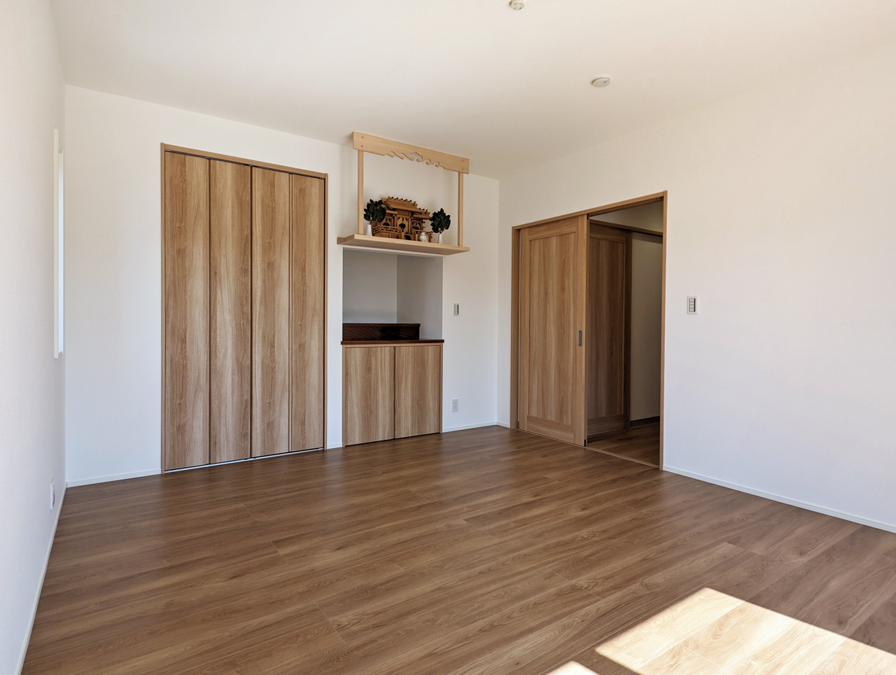 仏間と神棚を備えた、ゆとりの10帖洋室