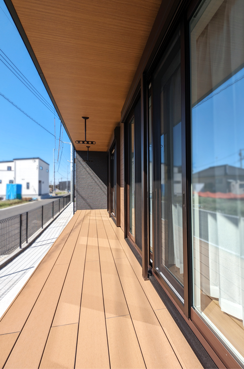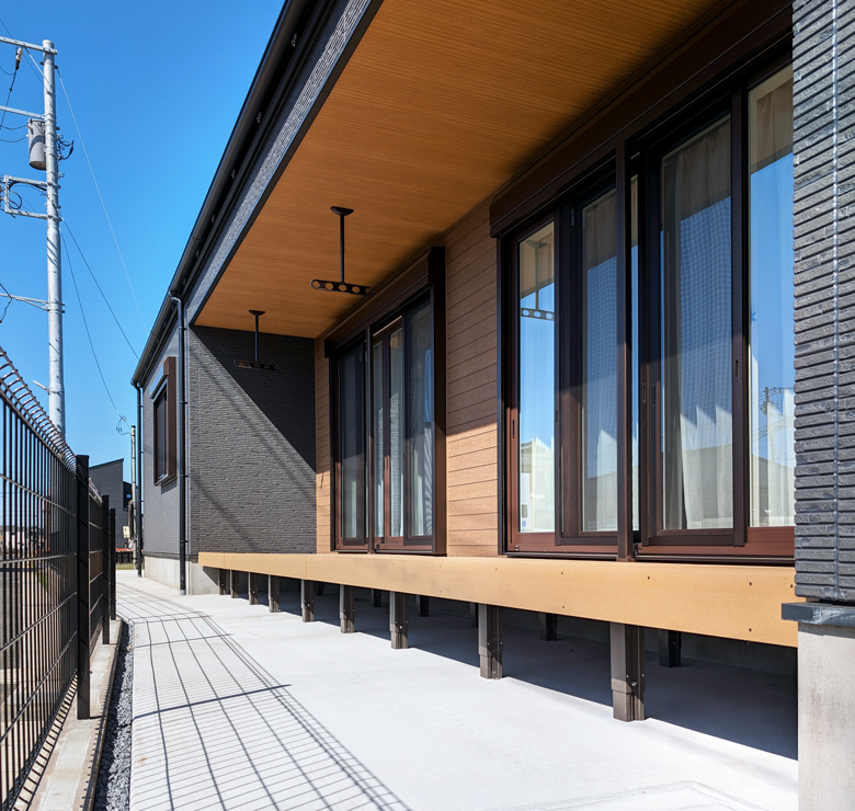 平屋の特性を活かし、奥行きと幅をたっぷりとった縁側を設けました。室内から外への動線もスムーズで、洗濯物を干す場所としても大活躍。天気の良い日には、日向ぼっこや読書など、ゆったりとした時間を過ごせる癒しの空間です。