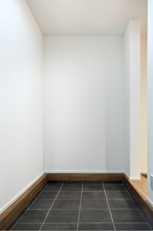 玄関の横には、ゆとりのあるストックヤード(土間収納)を設けました。アウトドア用品や趣味の道具、日用品のストックなど、さまざまな用途に活用できる便利な空間です。