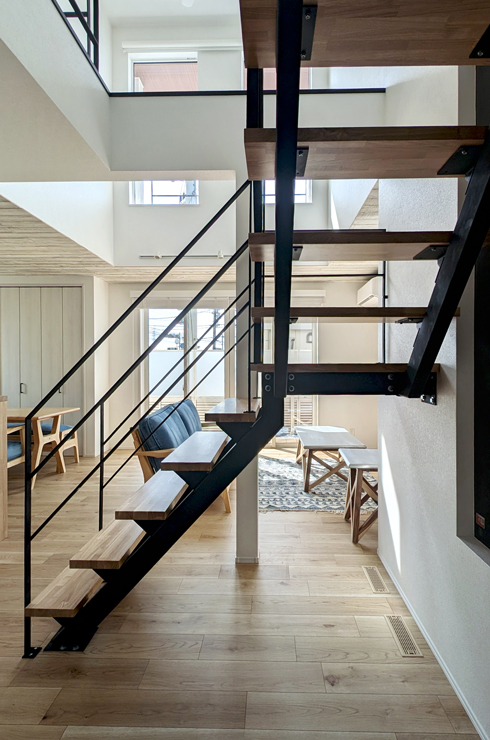 デザイン性と開放感を両立させたスリット鉄骨階段