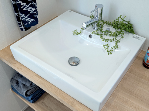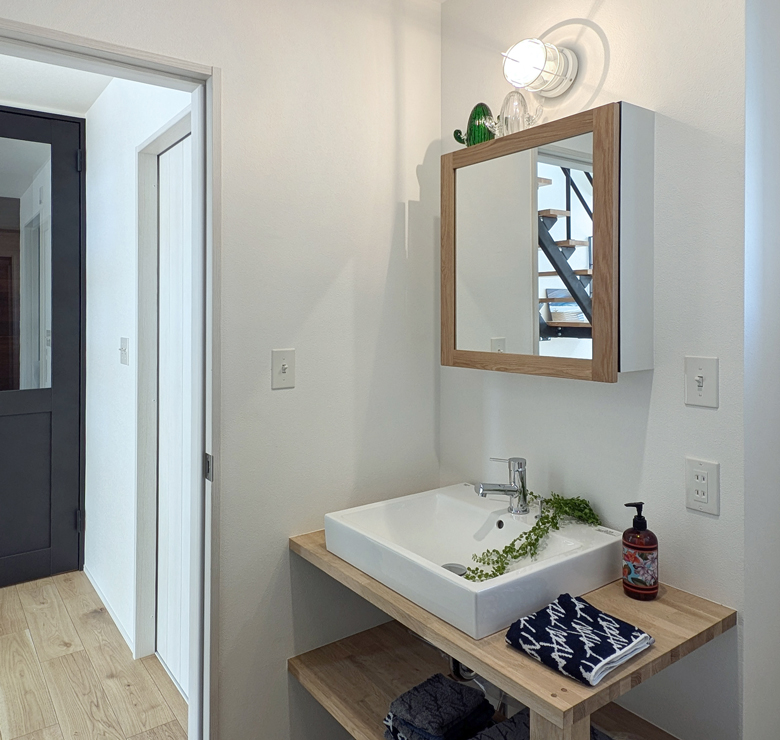 木のぬくもりとマリンテイストが調和した洗面空間