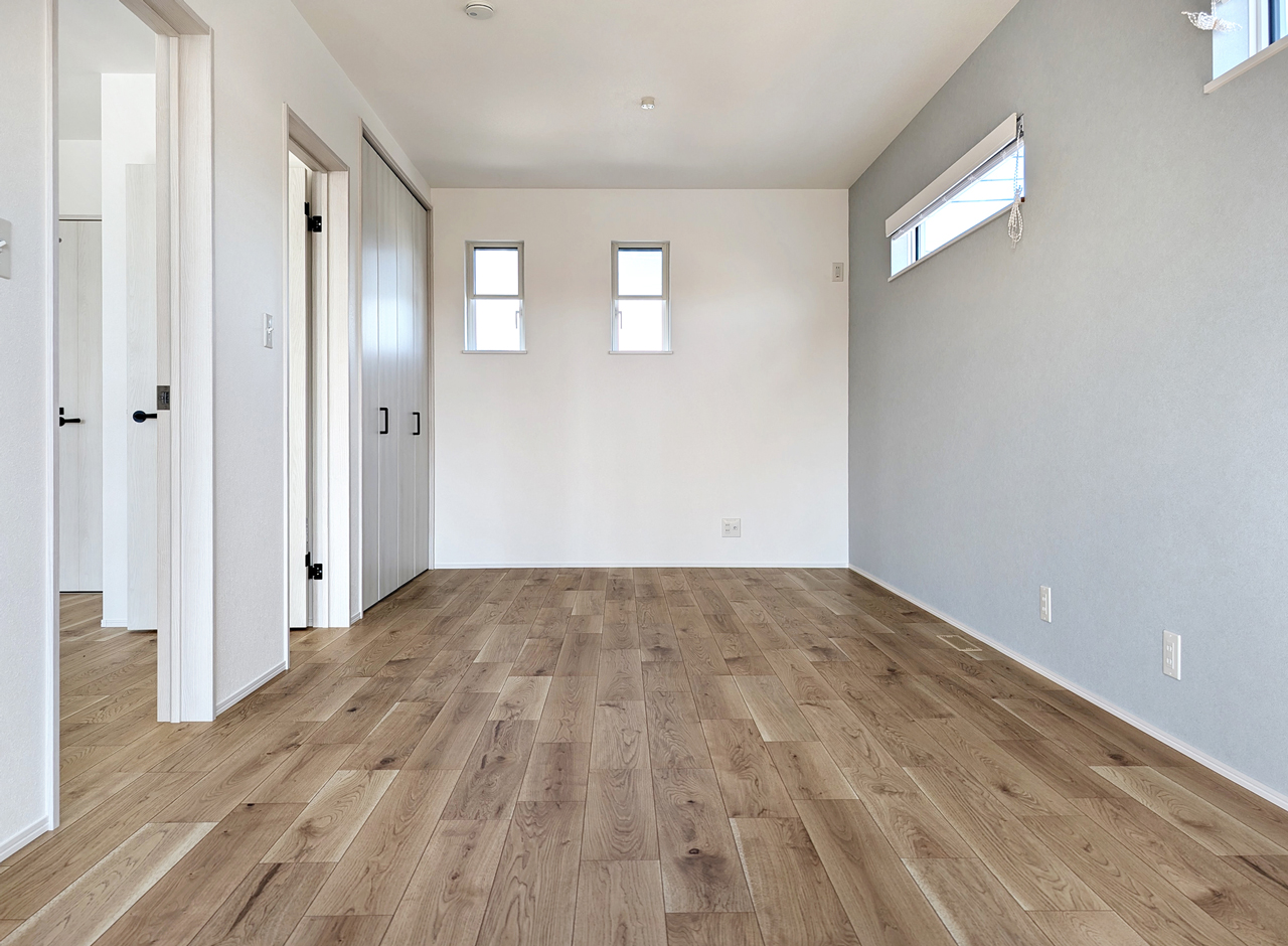 床には1階と同じく、イクタの銘木フロアーラスティック/ナラ樫の突き板フローリングを採用。木の風合いを活かした落ち着きのある足ざわりが、寝室としても子ども部屋としても心地よい空間を演出します。