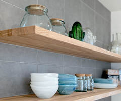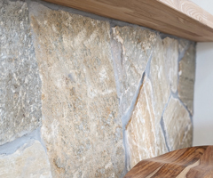 石と木の質感が引き立つ、こだわりのキッチン空間