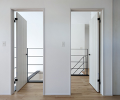 玄関ドアには断熱タイプを、窓にはアルミ樹脂複合サッシとLow-E複層ガラスを使用。