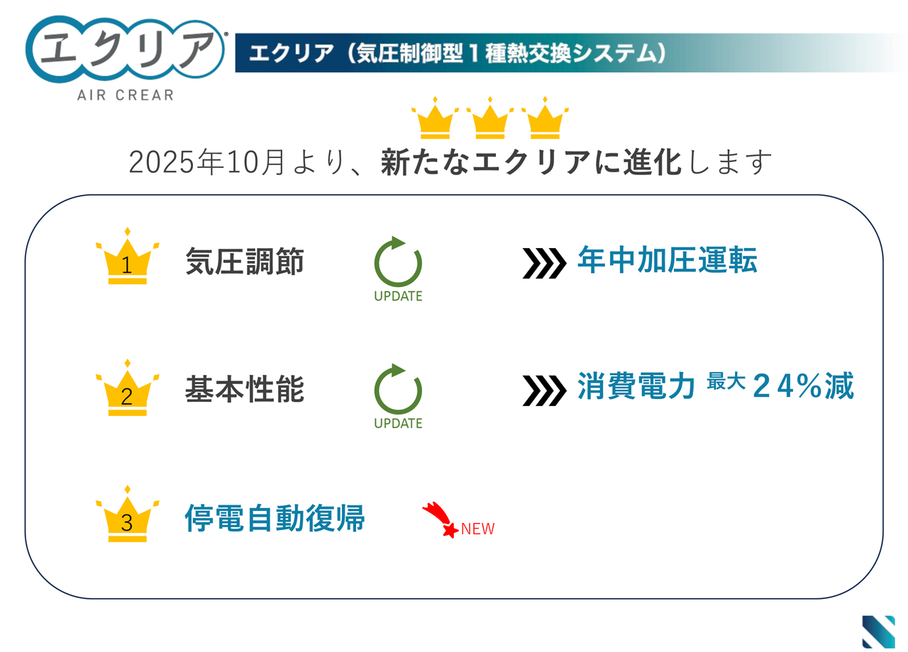 【エクリア】気圧調整式第一種全熱交換気システムがリニューアル!