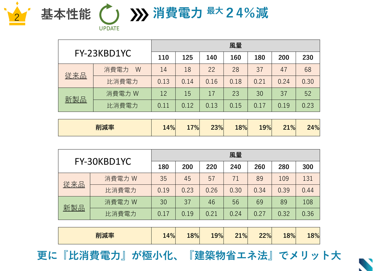 省エネ性能がさらに向上し、消費電力が最大24%削減!これにより、「建築物省エネ法」の基準達成においても大きなメリットにつながります。